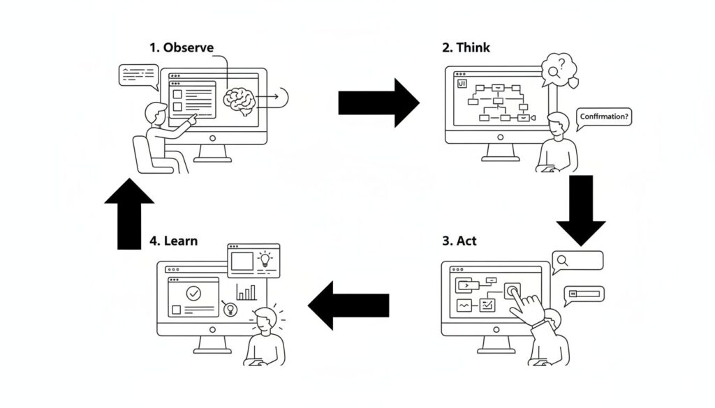 - 学習 (Learn): アクションの結果、画面がどう変化したかを新たなスクリーンショットで確認し、フィードバックとして次の「観測」フェーズに活かします。