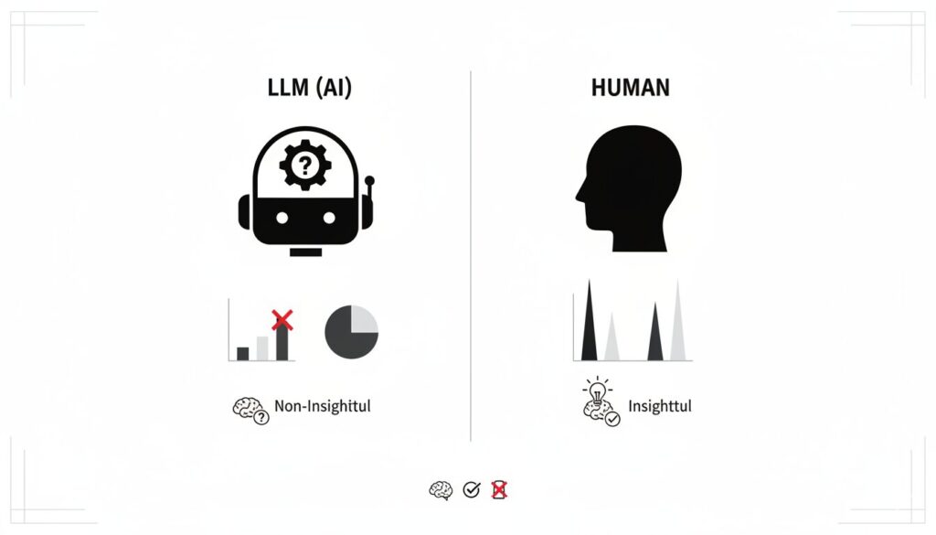 このプロセスは、知識の検索ではなく、思考の柔軟性を問うものであり、現在のLLMが最も苦手とする領域の一つです。