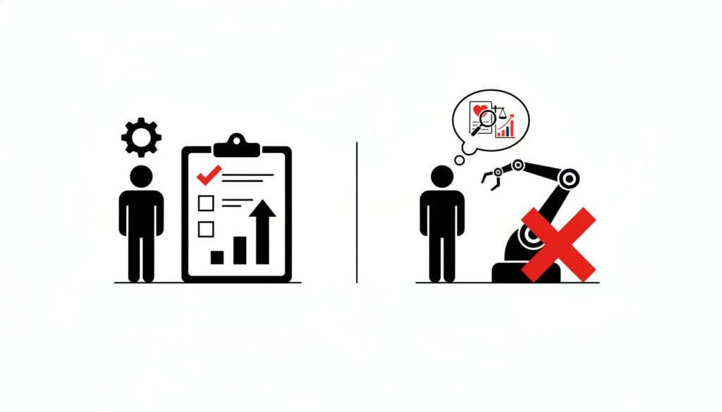 何より重要なのは、責任の所在です。AIが下した判断によって誰かが不利益を被った際、その重荷を背負えるのは人間だけです。責任を負えない主体に決定権を譲渡することは、組織の崩壊を意味します。人間が「代替されない」と考える背景には、労働の本質には「責任を負う」という行為が含まれているという自負があるのです。