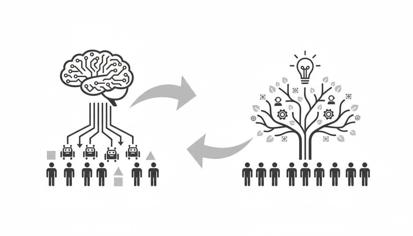 - 短期的なコスト削減を目的としたAI活用は、長期的な組織のスキル基盤を弱体化させるリスクを持つ。