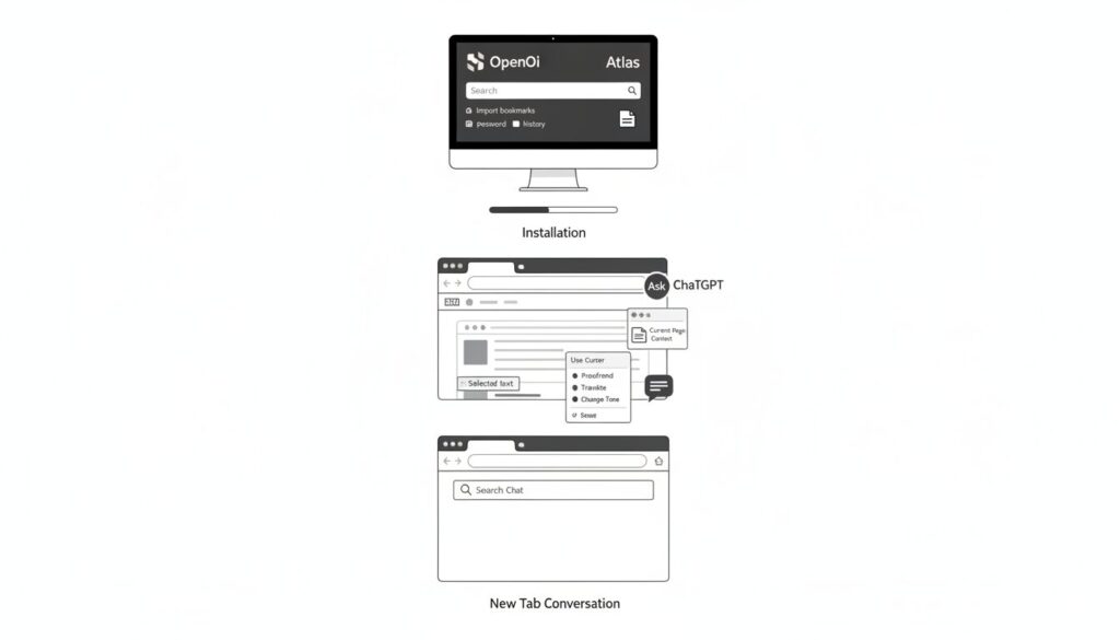 - インストール: OpenAIの公式サイトからAtlasをダウンロードし、インストールします。(現在はMac版が先行リリース)