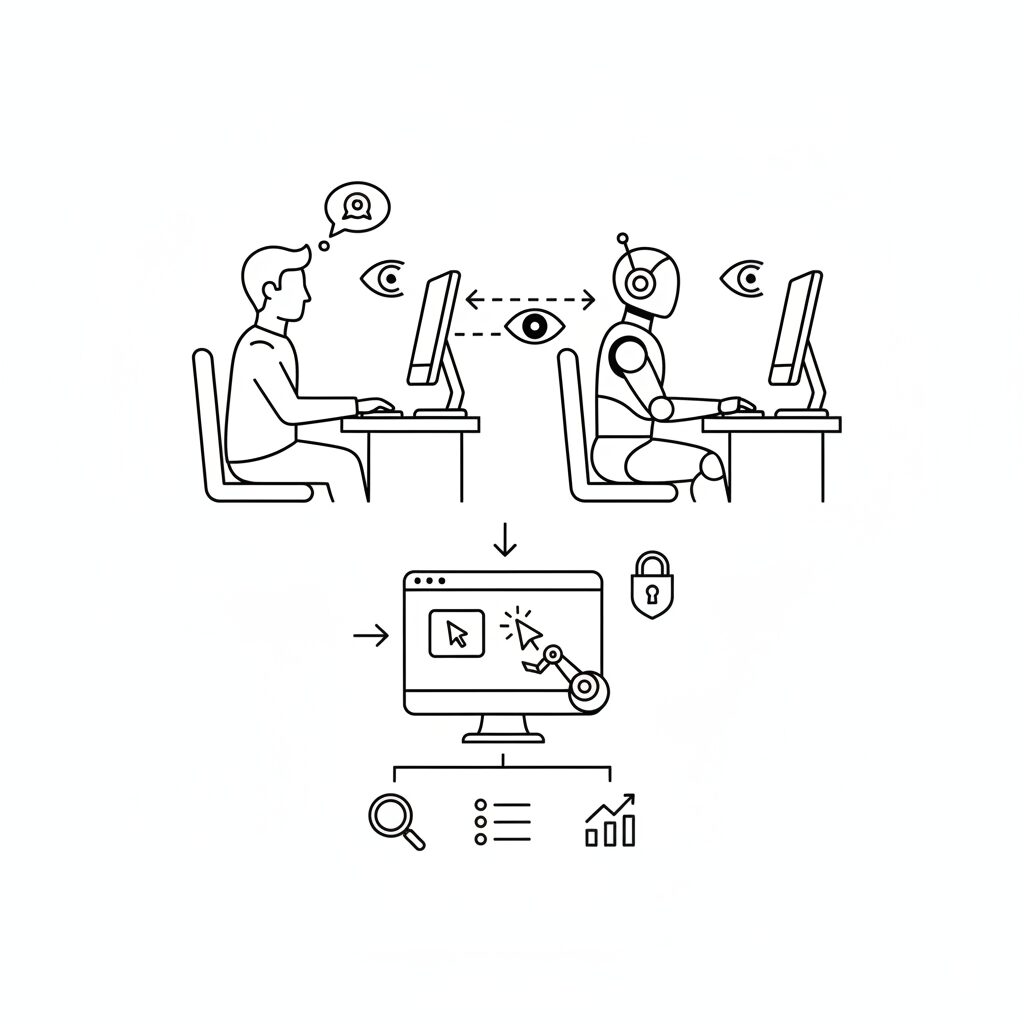 「DeepL Agent」の凄さは、CUA(Computer Using Agent) と呼ばれる仕組みにあります。特定のアプリケーションとのAPI連携を必要とせず、人間がPCの画面を見て操作するように、AIが画面上の情報を視覚的に認識し、仮想のキーボードとマウスを使ってタスクを実行するのです。