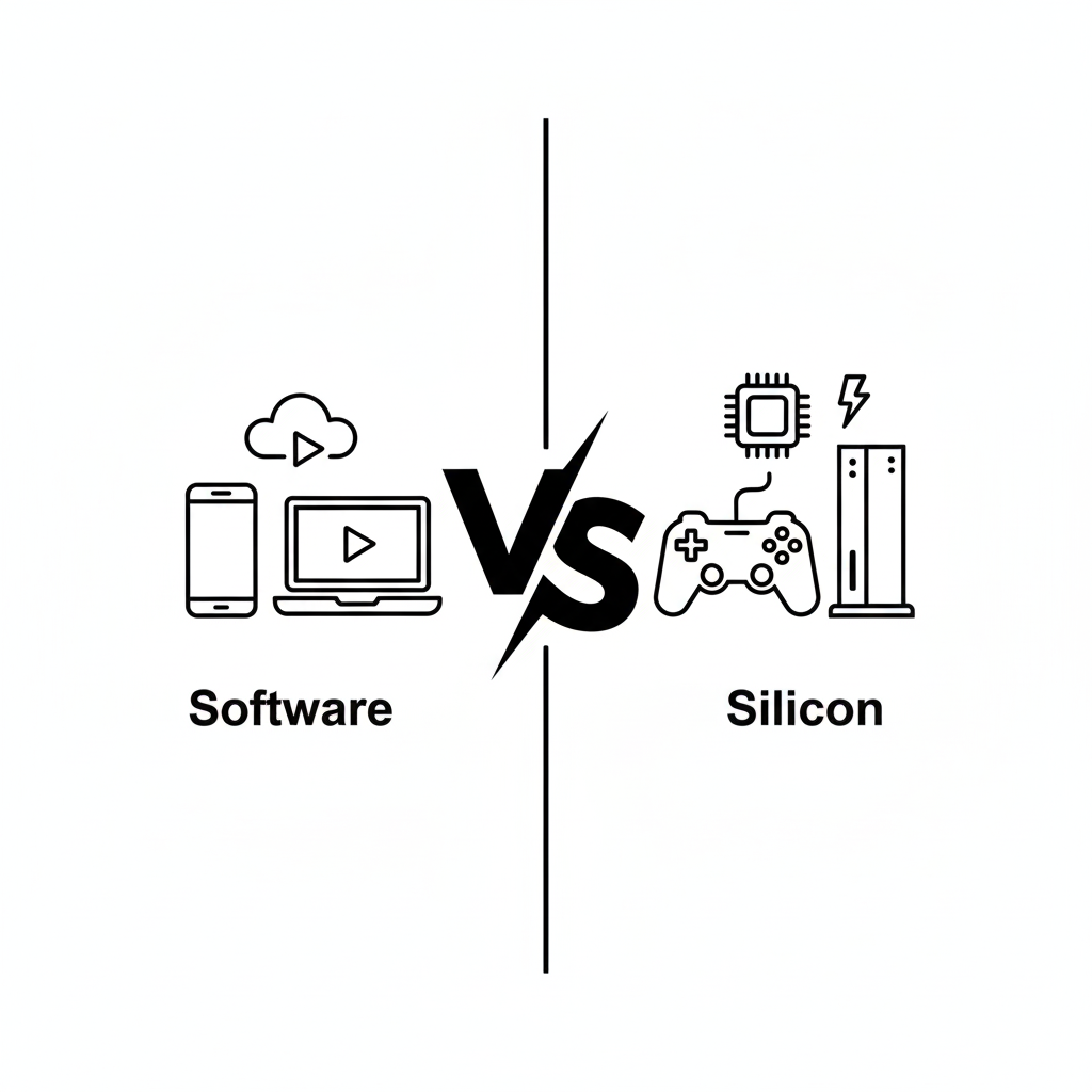 大手テック企業がゲームAIの覇権を巡って軍拡競争を繰り広げていますが、その戦略は全く異なります。これは 「ソフトウェア対シリコン」 の思想の違いと言えるでしょう。