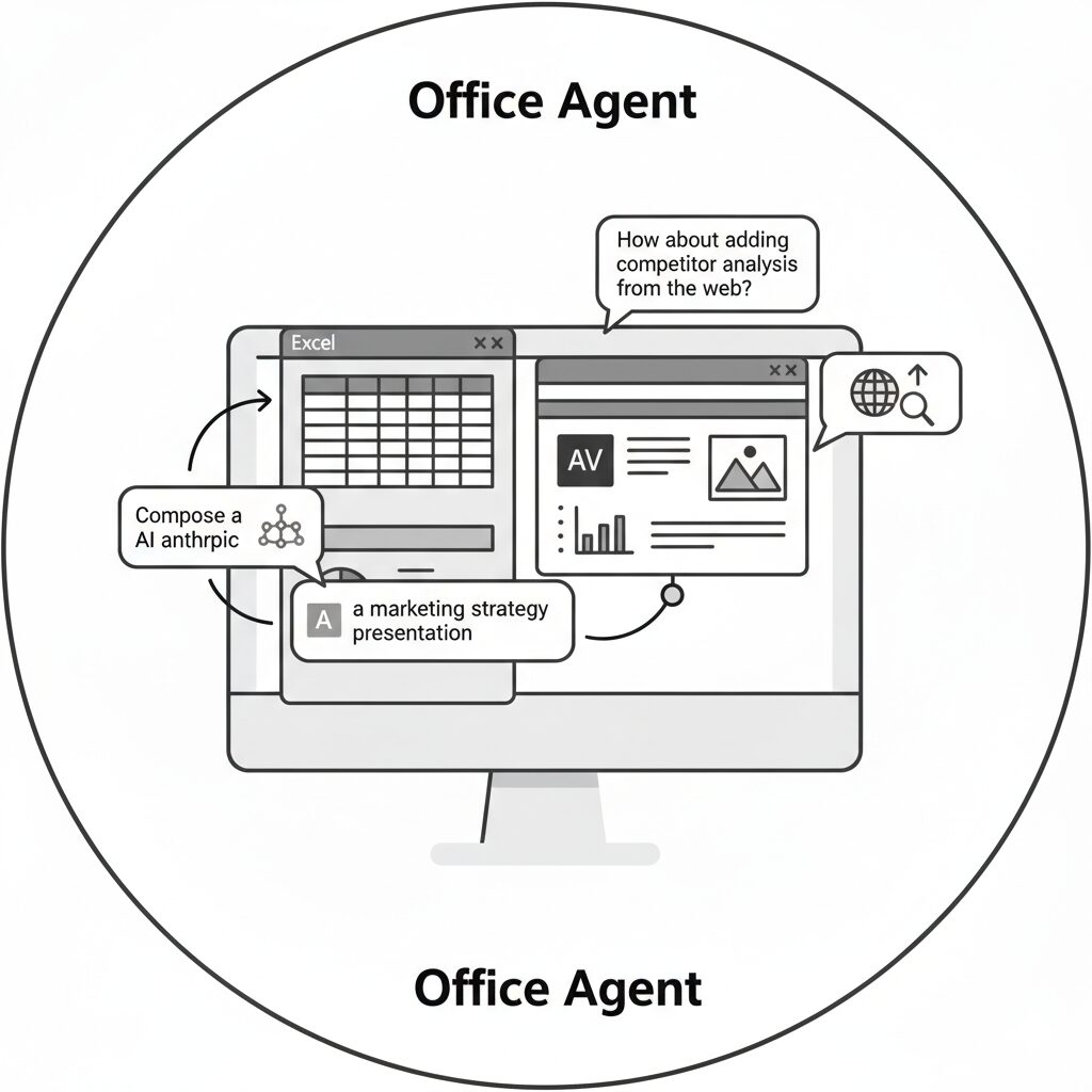 - 「Office Agent」は、Anthropicモデルを搭載し、特にプレゼン資料のような複雑なコンテンツを会話ベースで高品質に生成します。