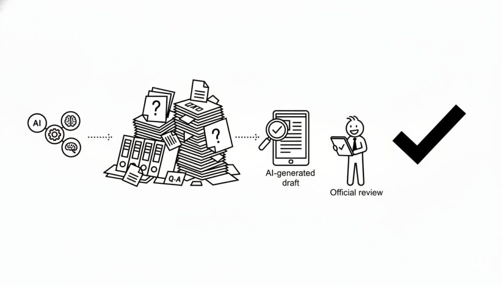 - 属人化の防止: 複雑な制度理解が必要だったQ&A作成業務が標準化され、担当者のスキルへの依存を減らすことが期待できます。