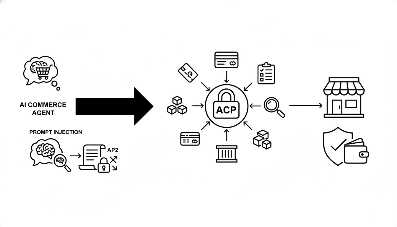 エージェントコマースは、効率化と同時に新たなリスクをもたらします。最大の懸念は「プロンプトインジェクション攻撃」です。悪意ある第三者がチャットボットを騙し、偽の決済リンク(フィッシングサイト)へユーザーを誘導する危険性です。