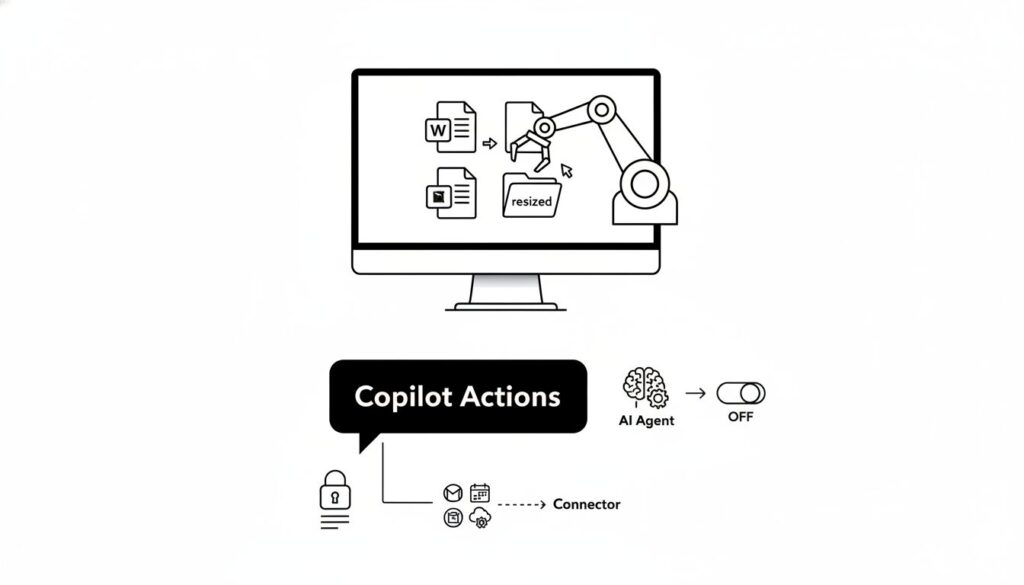 - AIエージェントの登場:「Copilot Actions」は、厳格なセキュリティ管理の下、ユーザーに代わってPC上のタスクを自動実行する。