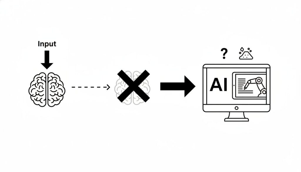 生成AIが提供する流暢で整然とした回答は、この「望ましい困難」を徹底的に排除します。ユーザーは、思考の葛藤を経ることなく、またたく間に「正解らしきもの」に到達できてしまう。この摩擦のない体験こそが、学習プロセスを形骸化させ、深い理解を阻害する要因です。